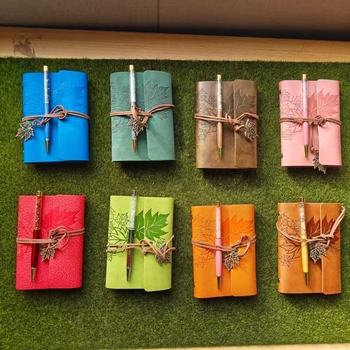 Travelers Vintage Notebook Diary Maple Leaf Notebook con Crystal Chips Pen para regalo