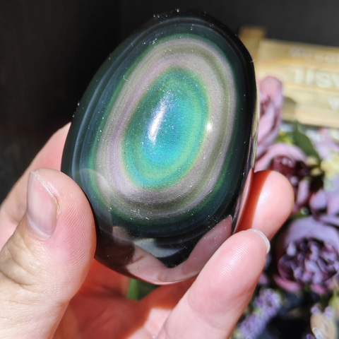 Adorno de piedras preciosas naturales Cristal de alta calidad Semi pulido Arco Iris Ojo Obsidiana Piedra cruda para Decoración