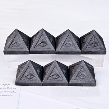 Hotsale Crystal Crafts Evil Eye Carvings 5cm Black Shungite Pyramid for Home Decoration